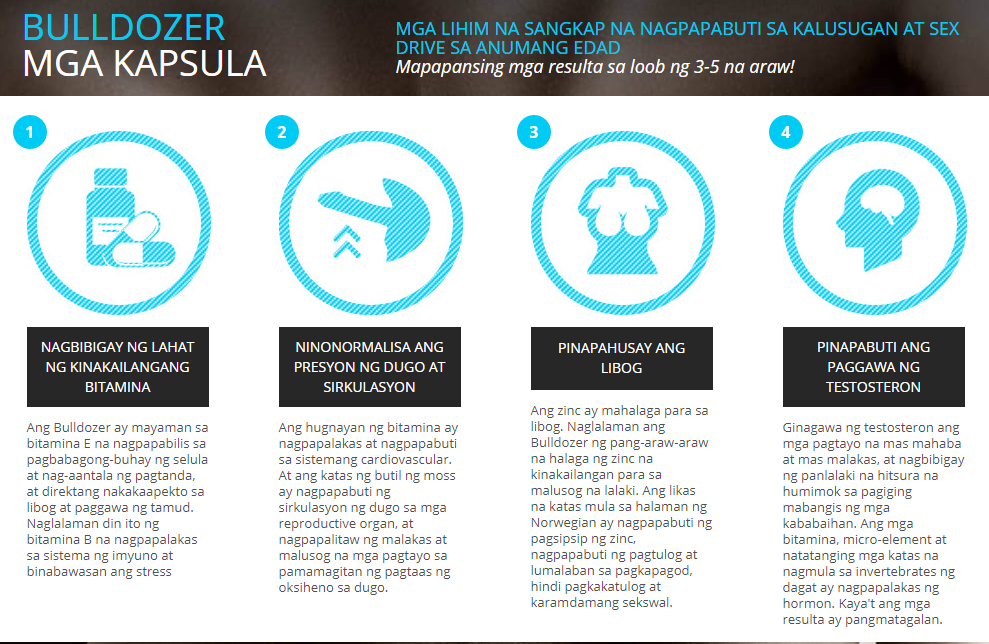 Ngunit, mahirap itong gawin kung hindi kaya tumagal ang lalaki. Kaya sa mga nakalipas na taon, inirerekomenda ko sa mga pasyente kong lalaki na solusyunan ang kanilang erectile dysfuction sa tulong ng Bulldozer capsules. Ang remedy na ito ay mabisa at naglalaman ng natatanging sangkap.