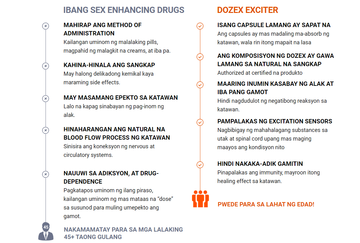Tumutulong ito upang mas maging malakas ang dating ng lalaki sa babae, at maging masarap ang sex. Dahil sa Dozex capsule, nawala ang pangamba ko na magreseta ng sex enhancer pills sa aking mga pasyente dahil alam ko na gawa lamang ito sa purong natural na sangkap kaya walang kahit na anong side effects.