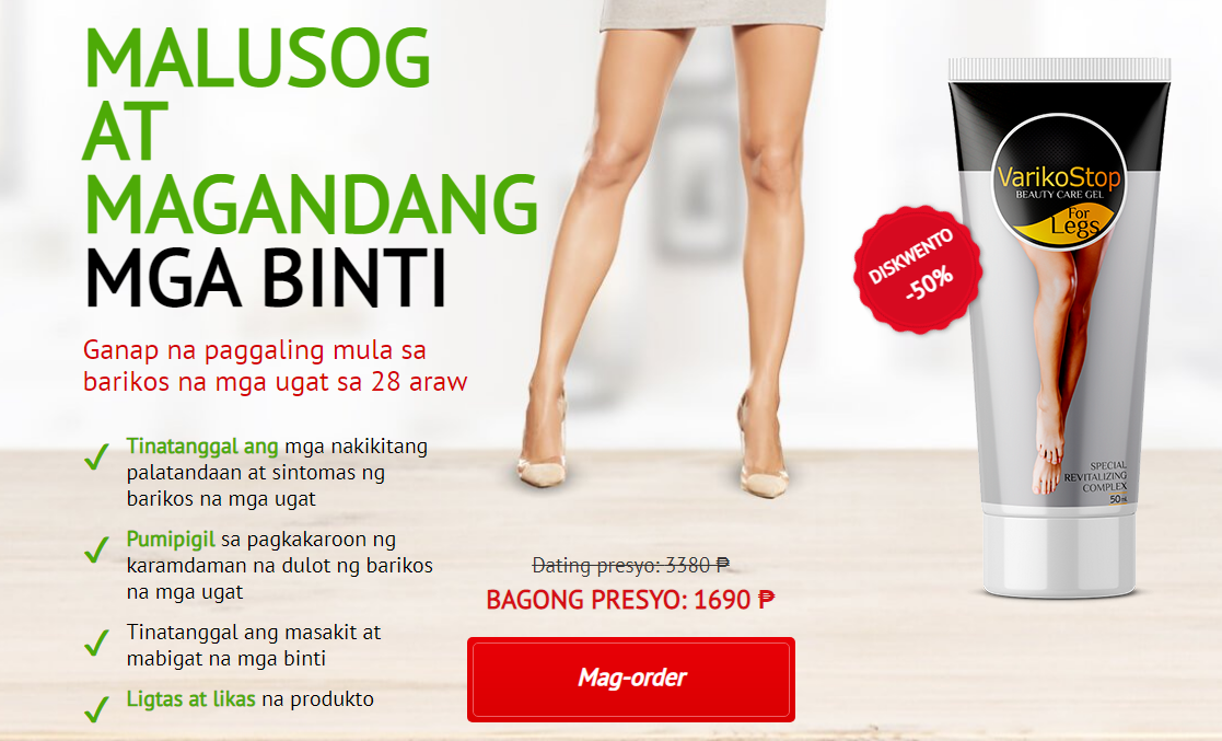 VARIKOSTOP GEL - PRODUKTO NG BAGONG HENERASYON. VARIKOSTOP Tinatanggal nito hindi lamang ang mga epekto ng barikos na mga ugat, kundi pati ang sanhi nito - pamumuo ng dugo. Pinasisigla nito ang sirkulasyon ng dugo at pinatitibay ang mga pader ng daluyan ng dugo.